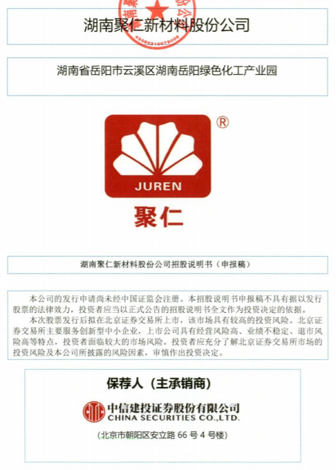 6月30日,湖南聚仁新材料股份公司(以下简称“聚仁新材”)北交所IPO获受理,保荐机构为中信建投证券,保荐代表人为陈越、孙栋,会计师事务所为天职国际。