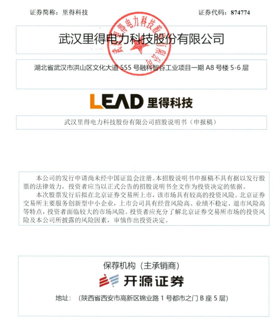 近日,武汉里得电力科技股份有限公司(以下简称“里得科技”) 北交所IPO申请获受理,保荐机构为开源证券股份有限公司。