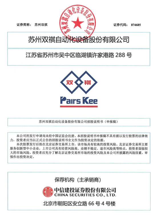 近日,苏州双祺自动化设备股份有限公司(以下简称“苏州双祺”)北交所IPO申请获受理,保荐机构为中信建投证券股份有限公司,保荐代表人为武楠、徐小新,会计师事务所为容诚会计师事务所(特殊普通合伙)。